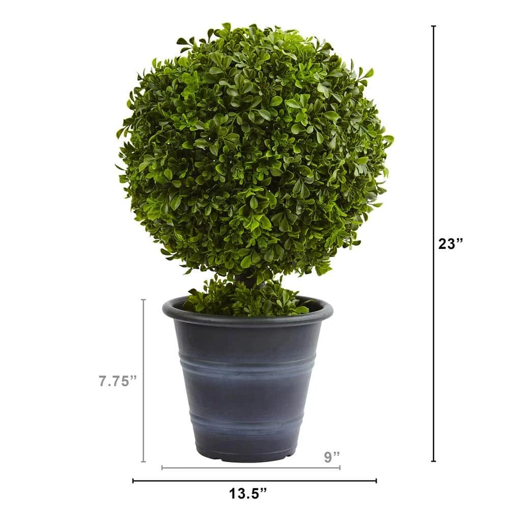 - 23 in. tall boxwood topiary adds a sense of farmhouse chic to year-round displays, includes planter