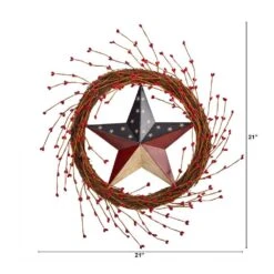 The 25 in. artificial eucalyptus wreath features many neatly trimmed green leaves that are arranged together in a circular formation. Sporting a lush appearance, this wreath will add a brilliant pop of greenery into your living room when hung in front of a white framed wall mirror or artwork. Or, you can use it to cover any bland interior wall that lacks any decorative pieces.