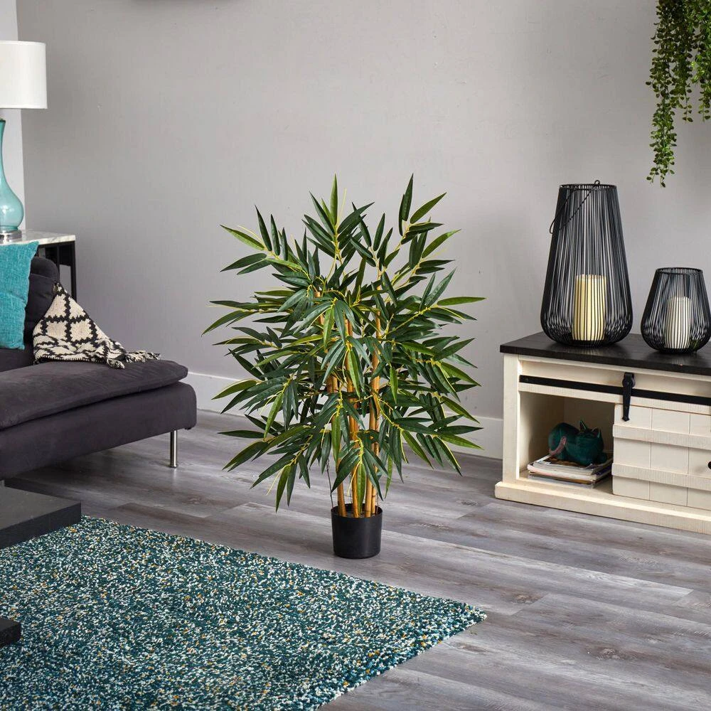 Picture yourself on a tropical island getaway as you admire this elegantly styled Biggy Bamboo Tree. Despite its name, this 3 foot palm fits nicely in any small space. Over 400 rich, bold, ample sized leaves embellish this small but majestic looking tree. All natural neutral-toned trunks are a nice compliment to the lush greenery. Standing gracefully in a basic black planter, this lovely bamboo makes a wonderful addition to any home or office space.