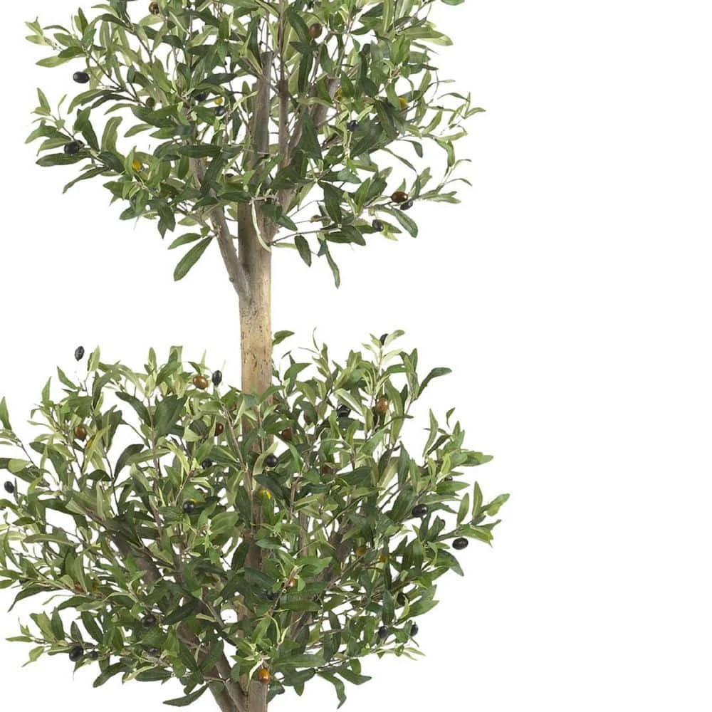 Delicate, yet sturdy; whimsical yet stately; this Olive Topiary fits snugly into any decor, and announces nature’s majesty, all year round. The 1794 leaves are divided into two faux growth points from the stately trunk, and splay about in all directions, giving a casual appearance that perfectly contrasts the neatness of the two groups. Makes an ideal doorway accent or conversation piece.