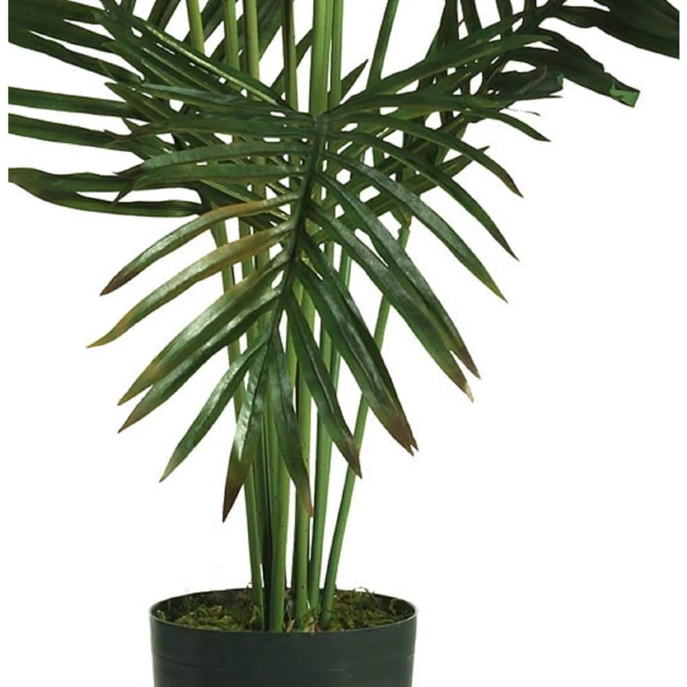 Feel the warm tropical breeze blow through your hair as you sit and gaze at this vibrant Paradise palm tree. Standing 5 feet high, this lovely tree is tall enough to make a bold statement yet compact enough to fit inside a small office or cozy apartment space. A dozen sprawling fronds extend outward in every direction, each covered with a mix of lush feathery pinnate styled leaves. Silk trees are manufactured using synthetic materials and are well designed and constructed to be life-like in appearance.