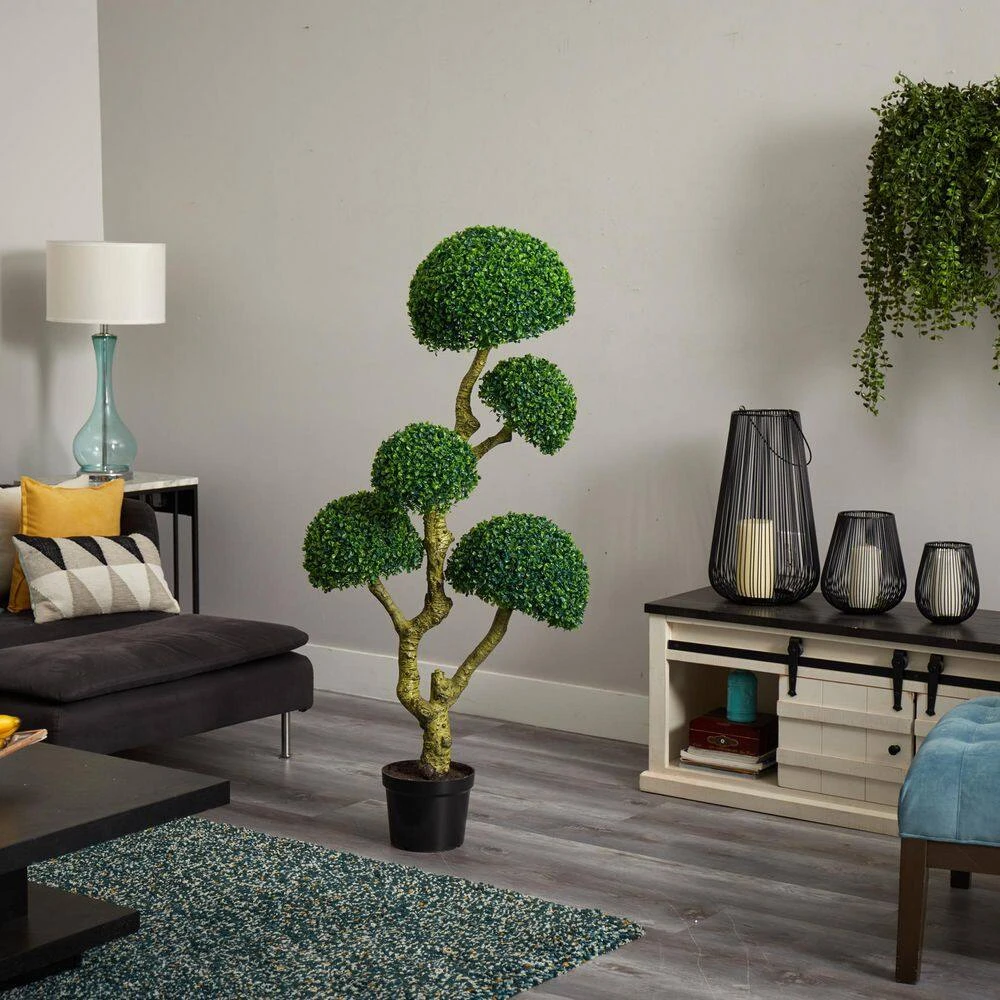 The view of your backyard scenery should be something to behold. Standing 5-ft. tall, this 5-head boxwood topiary tree is a dramatic attention-getter. Place near a patio table to add ambiance, or keep it indoors to add some flair.