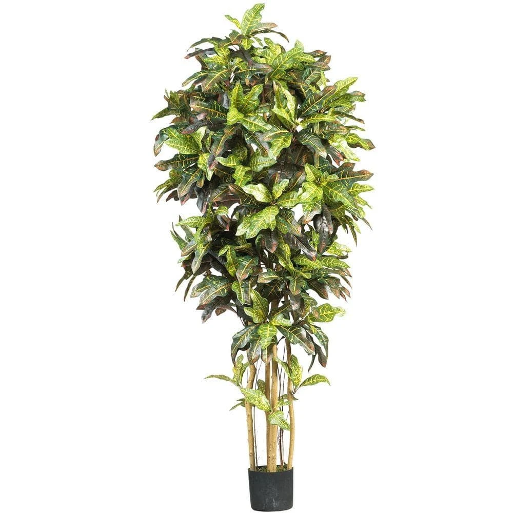 Just one glance at this breathtaking Croton silk tree and you will be daydreaming of a tropical paradise. The large multi-colored leaves of this extraordinary tree are sure to spruce up any home or office environment. At six ft. tall, this grand Croton is certain to leave a lasting impression. The colorful foliage and natural stalks add a touch of authentic appeal to this everlasting beauty.