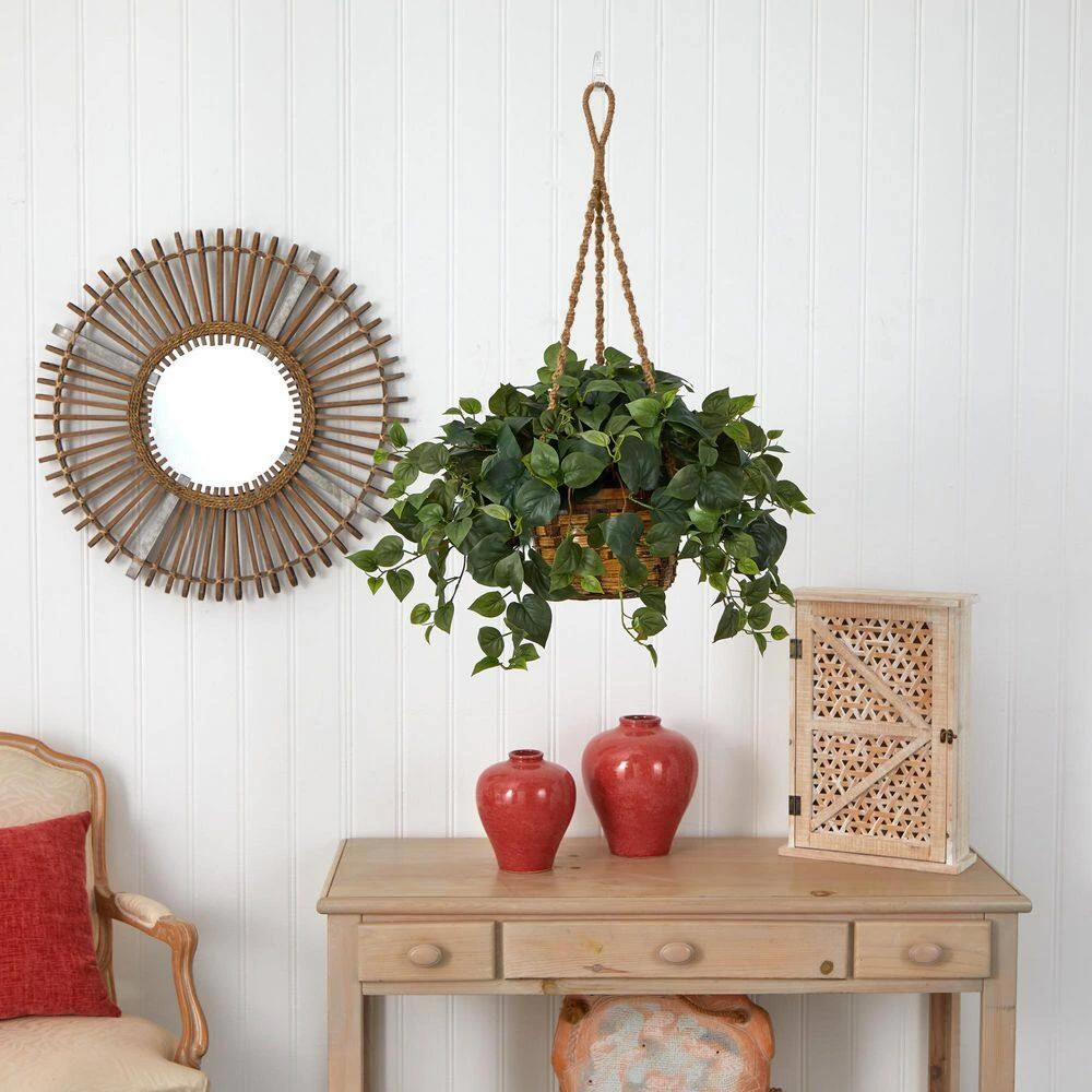 The Philo is known for it’s intricate, full growth shape and lush green leaves. And when used as a decorative plant, it brings a real sense of nature to the indoors. This flawless silk recreation captures the Philo at its height of freshness and will never need water or care (well, perhaps dust it every so often). Comes in a beautiful hanging basket that goes with any decor. Also makes a great gift.