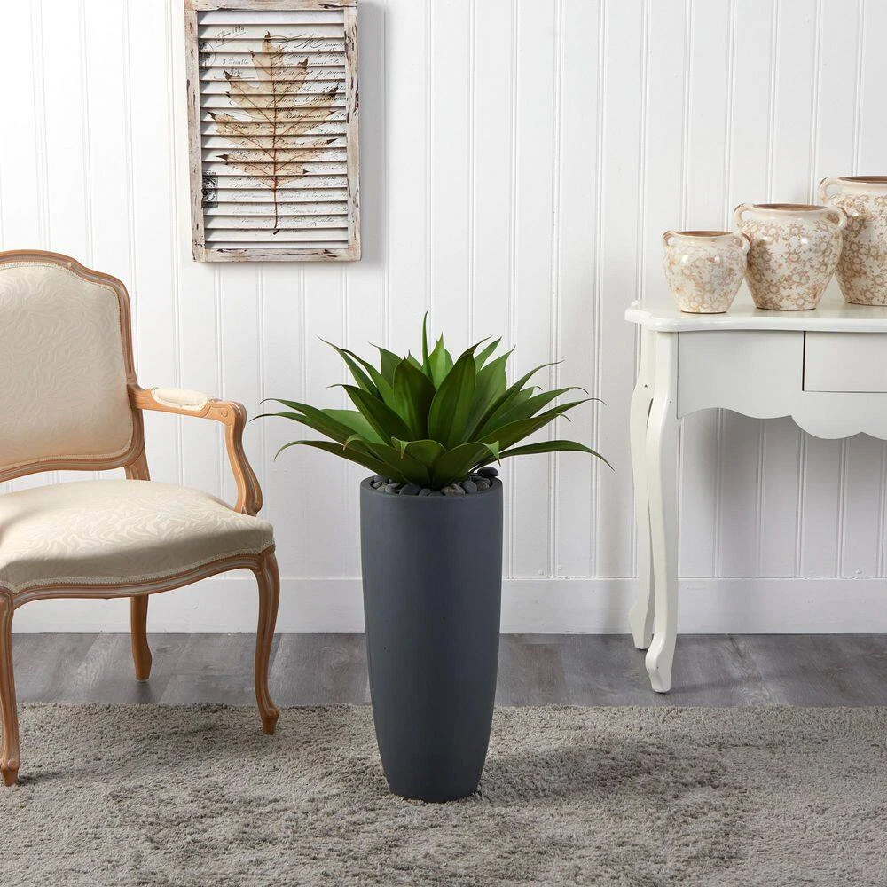 This distinctive faux agave in a tall cylindrical planter is the perfect blend of the rugged desert and modern, sleek design. This contemporary arrangement looks like something out of a recent issue of your favorite decor and style magazine. Thanks to the realistic leaves, this may look best in corner spaces or around entryways.