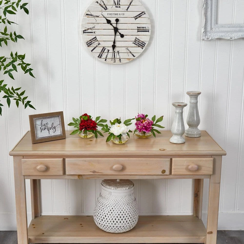 When we created this cute little 6 in. Peony, we said no sir, one is not enough. So we’ve arranged a set of three for Peony lovers everywhere. With two blooms of varying size (one main, one smaller) surrounded by a backdrop of green leaves, these make an ideal decoration for a smaller space that doesn’t want to be overwhelmed. Also makes a really thoughtful gift (who doesn’t like receiving THREE of something beautiful).