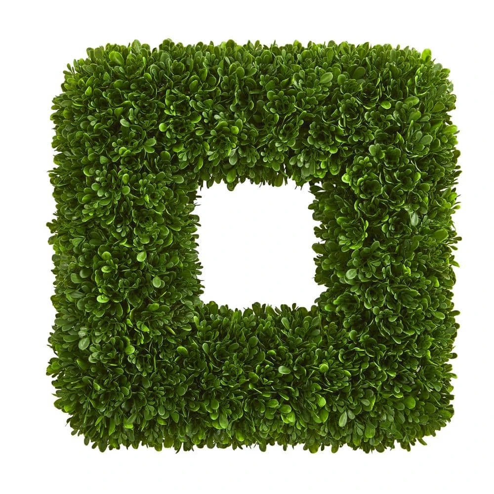 This 17 in. tea leaf artificial wreath comes arranged in a unique square shape that is sure to catch the eye. With its UV-resistant full foliage, it can be added to your front door with faux flowers for every season. However, it can be used as centerpiece as well for your dining room table or kitchen island to bring a realistic, colorful feature of the outdoors inside. In its unique and eye-catching square shape, this tea leaf artificial wreath is the perfect piece to add to any home. With its UV-resistant feature, it can bring a touch of nature indoors when placed in front of a hanging mirror.